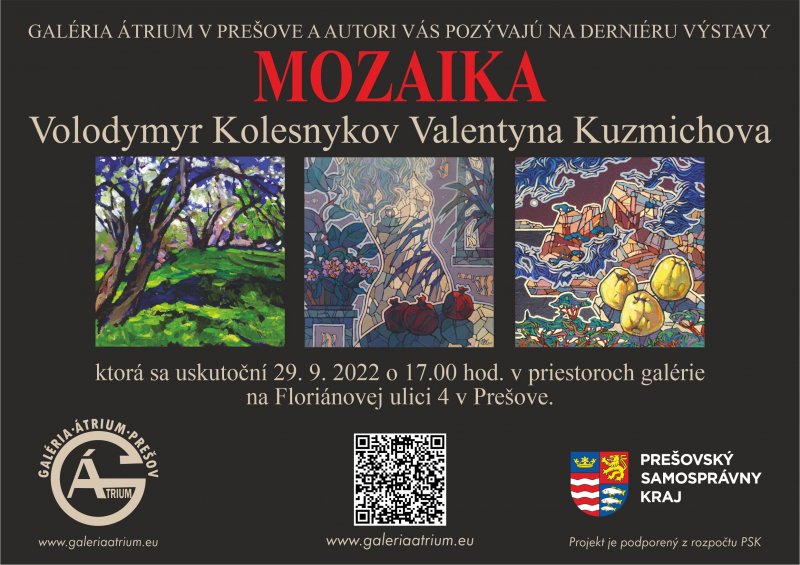 Spoločný výstavný projekt ukrajinskej dvojice umeleckých a životných partnerov pod názvom Mozaika ponúka 73 olejomalieb. Kolekcia je mozaikou nielen výberom, ale aj technikou maľby, predovšetkým na Valentininých dielach, ktorá vidí a cíti dominujúcu tému ženy a prírody veľmi intenzívne: